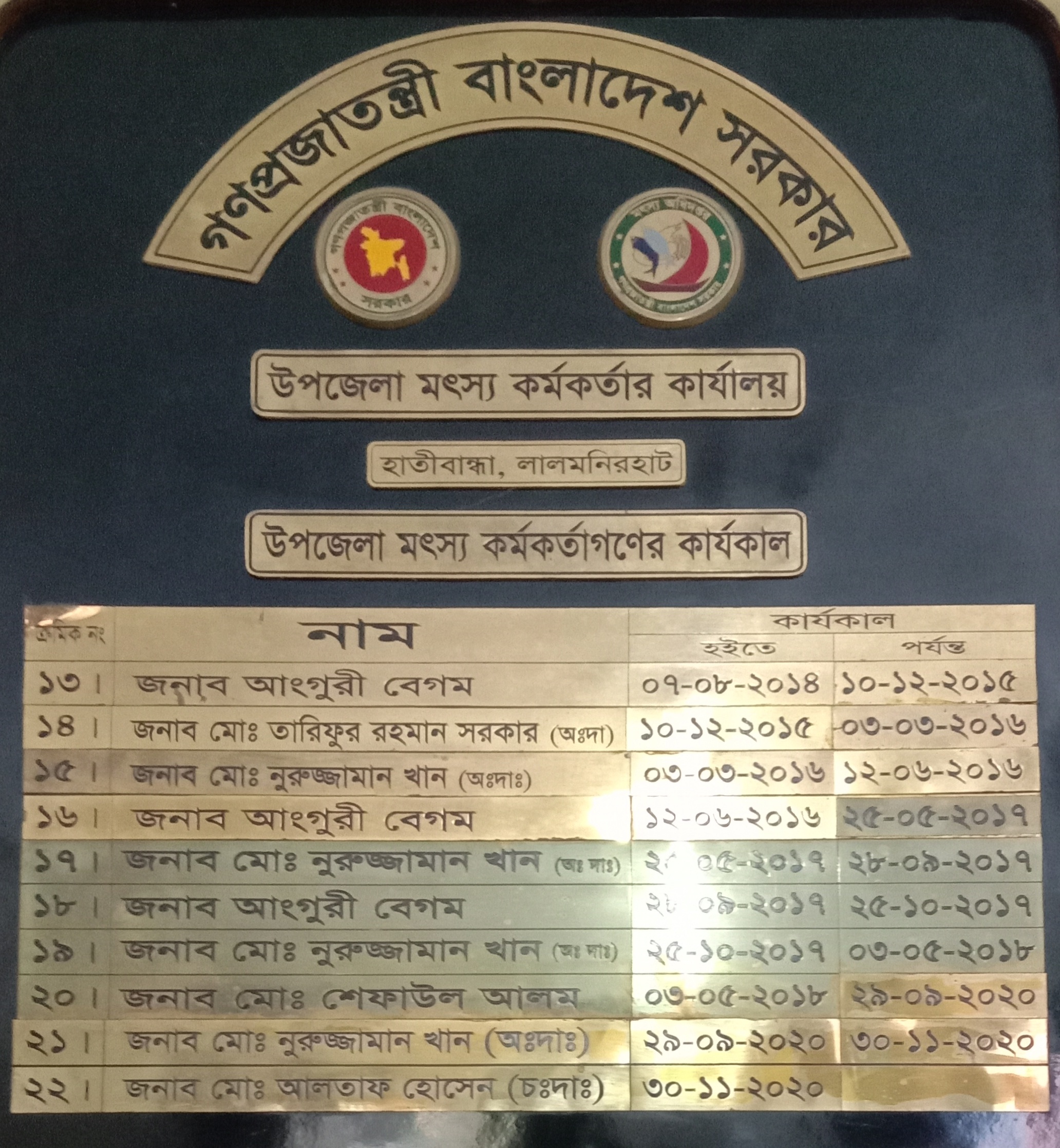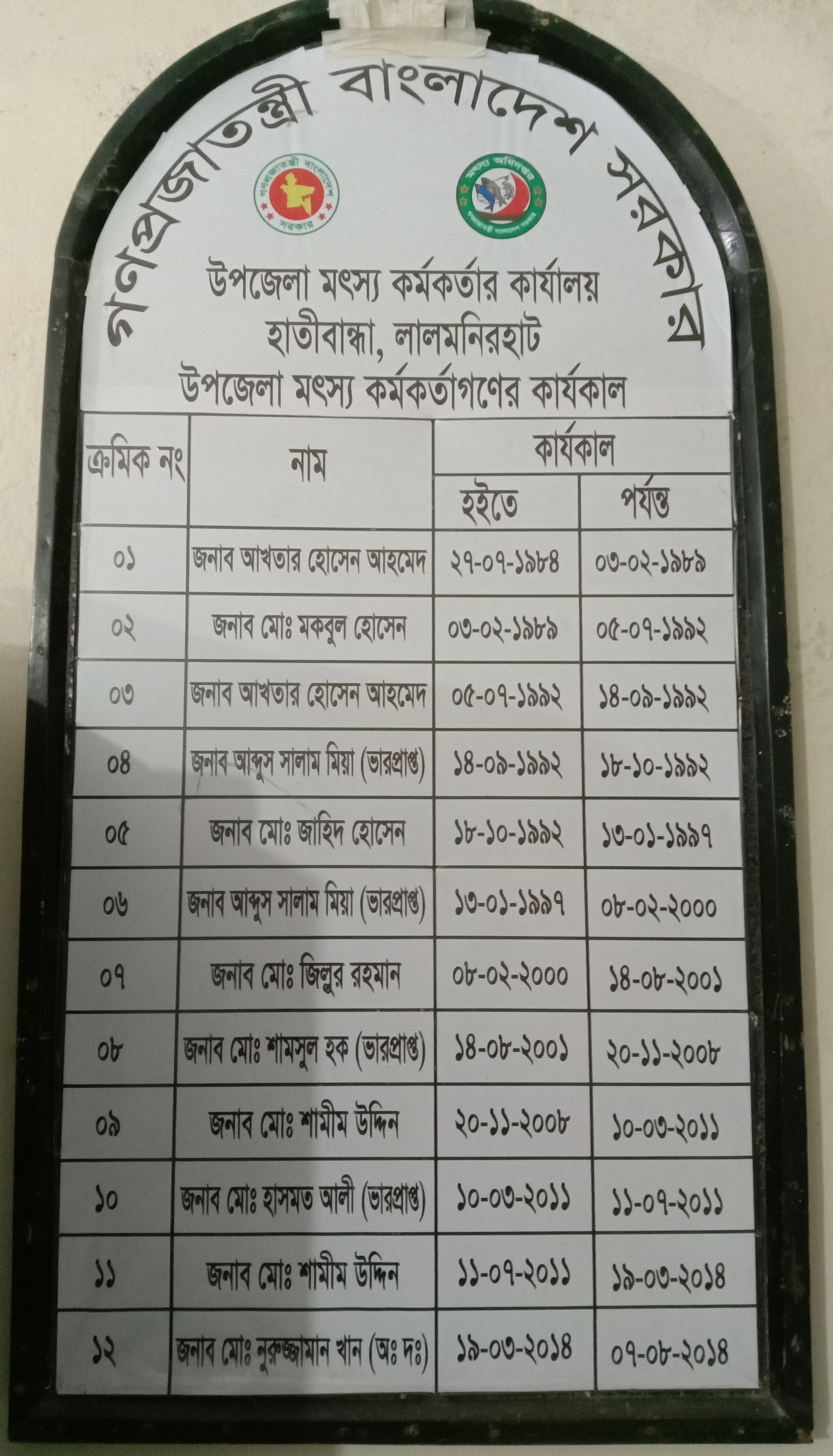 প্রাক্তন অফিস প্রধানগণ ও কার্যকাল